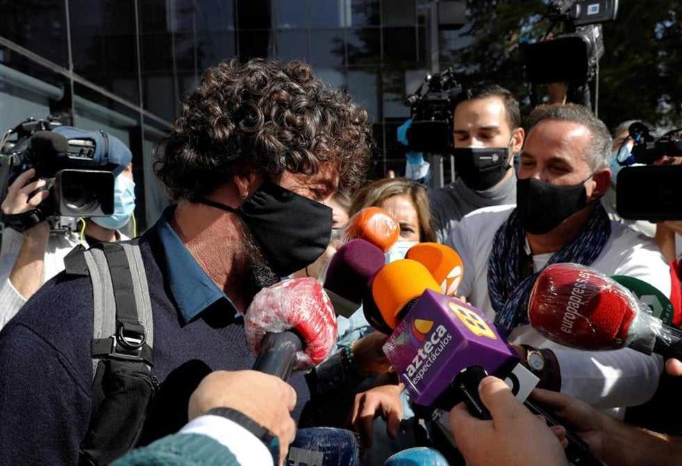 Nacho Palau, expareja del cantante Miguel Bosé, rodeado por periodistas tras declarar ante el Juzgado de Primera Instancia de la localidad madrileña de Pozuelo de Alarcón. Foto: EFE