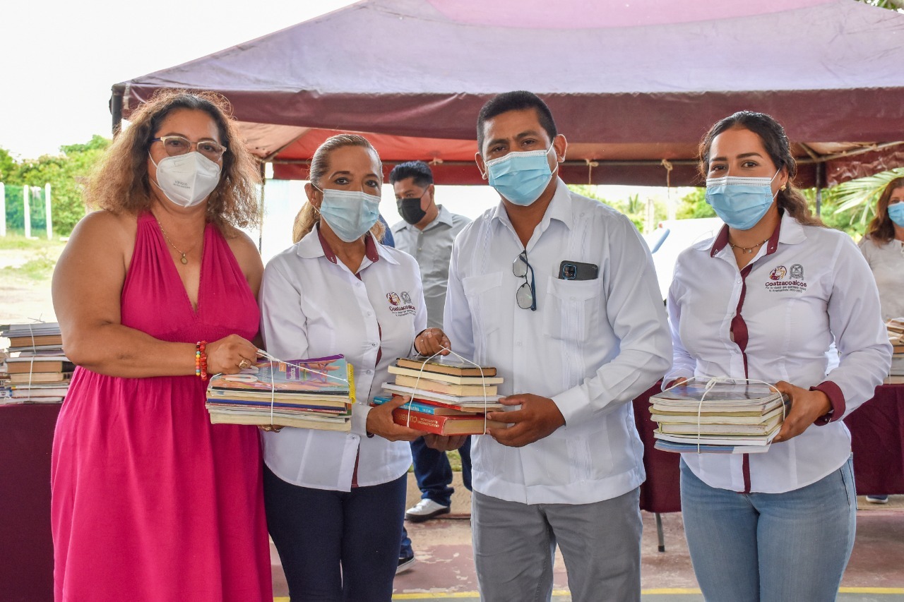 Gracias al apoyo de la ciudadanía, más de tres mil libros que donaron en el “Primer Kilómetro del Libro”, evento convocado por el Gobierno Municipal, fueron entregados a escuelas de los 12 ejidos y congregaciones de Coatzacoalcos, impulsando la lectura entre miles de alumnos de estas demarcaciones.